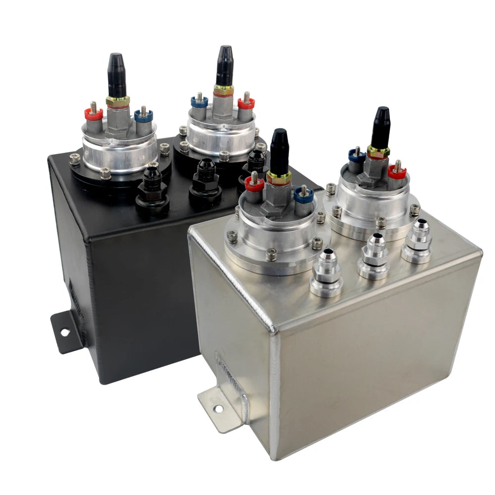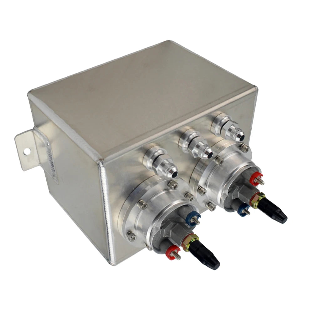 3L Dual BILLET ALUMINUM FUEL SURGE TANK / SURGE TANK With 2pc 044 FUEL PUMP SILVER OR BLACK